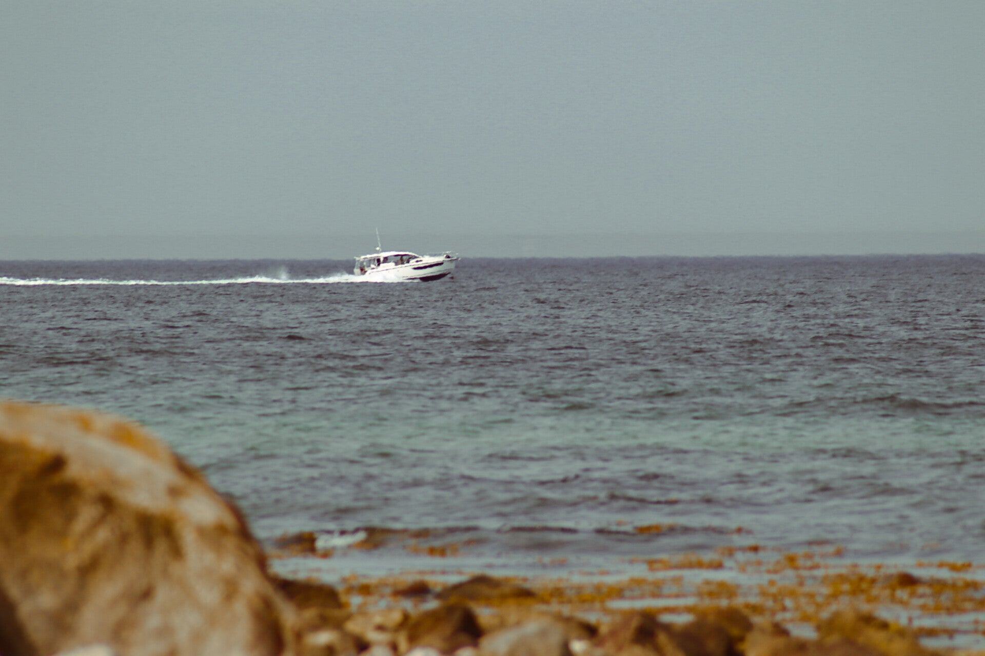 Ein Boot schneidet durch die Weite des Meeres – kraftvoll, frei, in Bewegung.